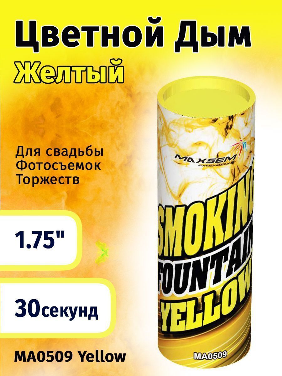 Дым желтый 1,75" 30сек. h-115мм. Можно держать в руках