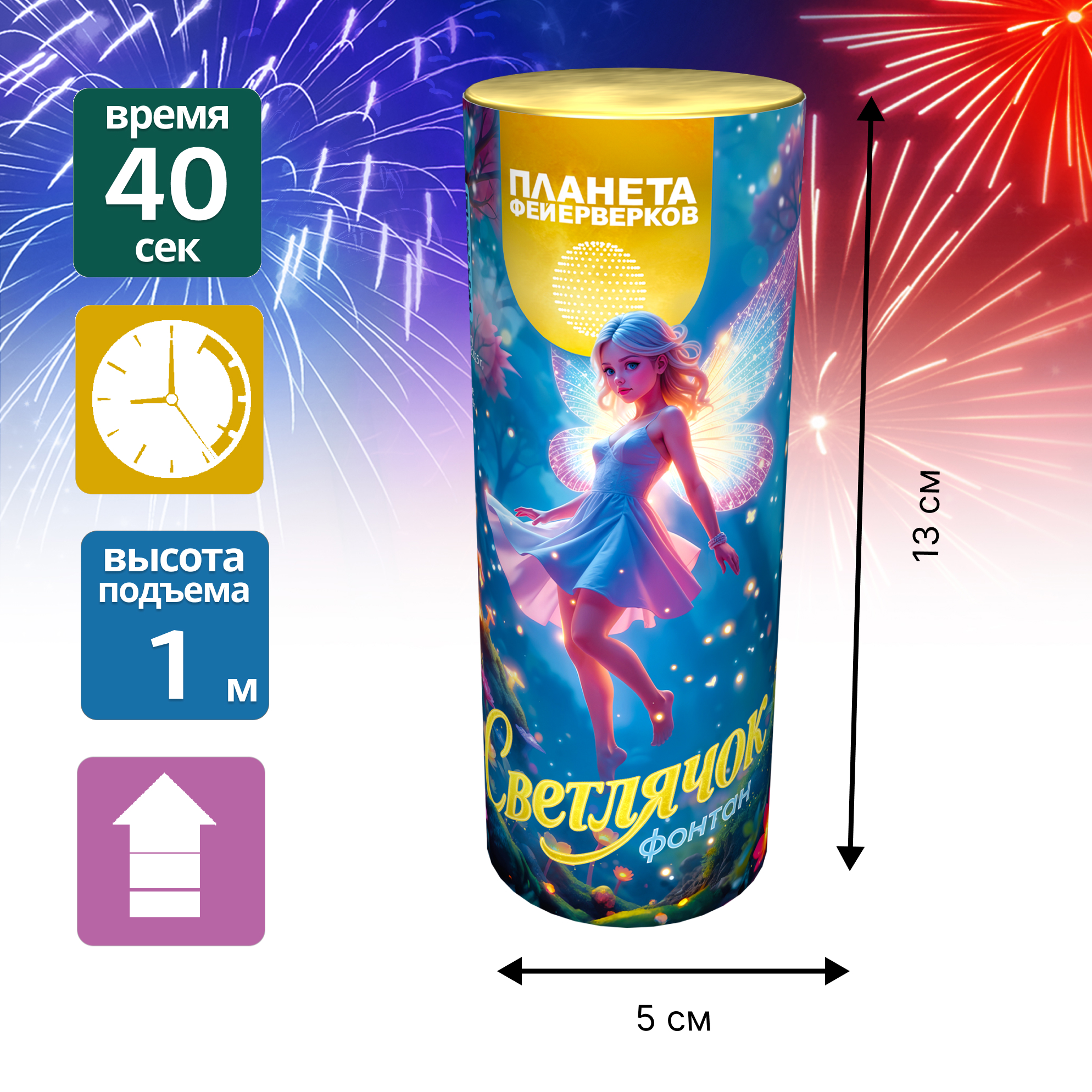 «Светлячок» -волшебное мерцание, спустившееся с ночного неба, чтобы подарить вам мгновения настоящего чуда!Перед вами оживает картина, будто тысячи светлячков решили устроить свой собственный праздник. Пусть «Светлячок» озарит ваш праздник тёплым, уютным светом — словно кусочек волшебства, который можно взять с собой в память о чудесном вечере! Идеально подходит для дополнения больших фейерверк шоу или как самостоятельное украшение мероприятия.