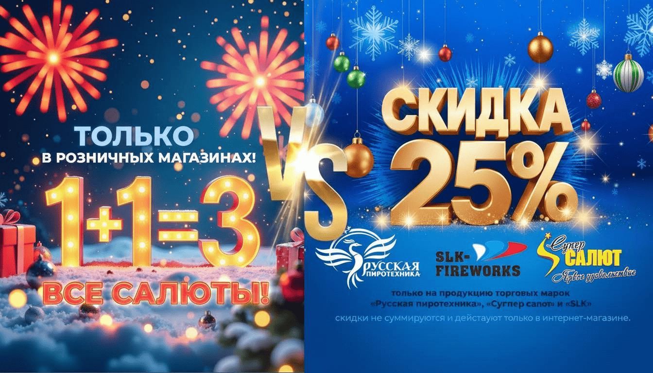 1+1=3 каждая третья батарея салютов в подарок - только ОФФЛАЙН